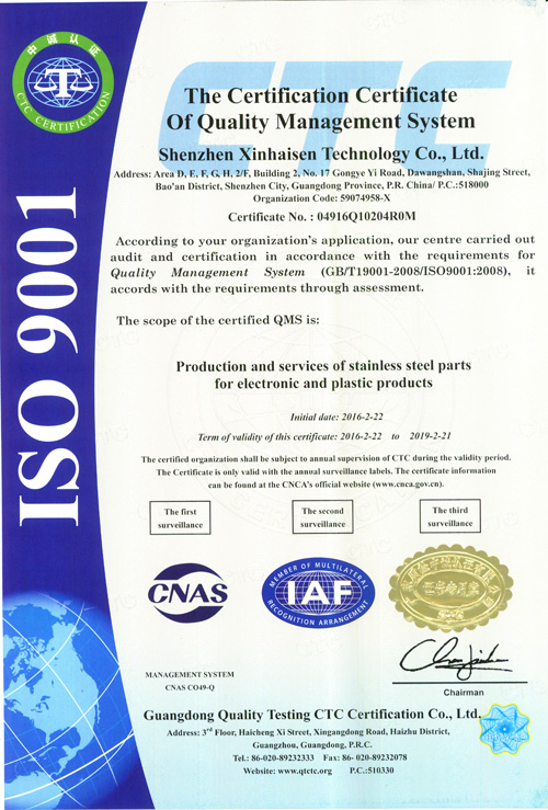 深圳市鑫海森科技有限公司成立于2006年,坐落于中國(guó)廣東省深圳市沙井鎮(zhèn),地理位置優(yōu)越,對(duì)于我司原物料采購(gòu)及協(xié)作加工有無(wú)法比擬的迅速性和高品質(zhì)性。 我司主要進(jìn)行精密五金件的加工,產(chǎn)品涉及的范圍相當(dāng)廣泛,涵蓋了通訊、聲學(xué)、光學(xué)、醫(yī)療、安防、機(jī)械、航空、陸運(yùn)工具、家電等等領(lǐng)域。本公司目前產(chǎn)能1000^2全自動(dòng)生產(chǎn)線(xiàn)6條。加工厚度從0.02mm-1.5mm產(chǎn)品的精度可以做到... 【查看詳情】